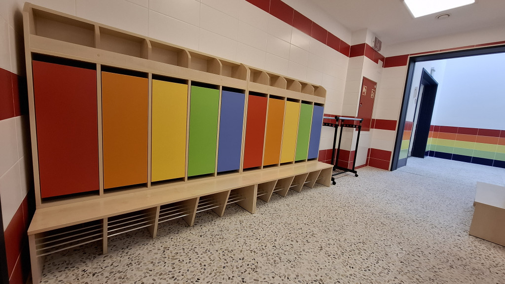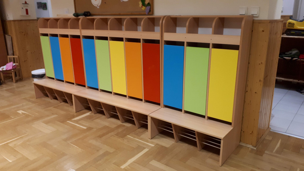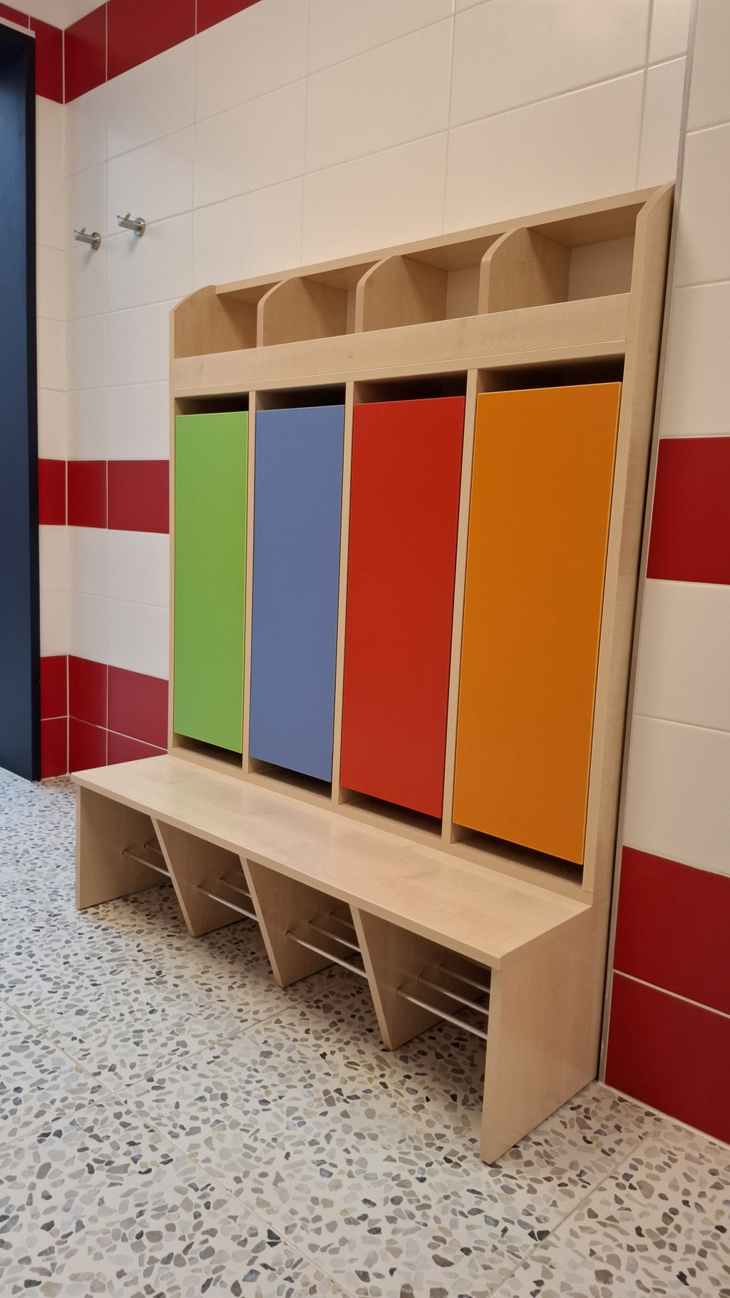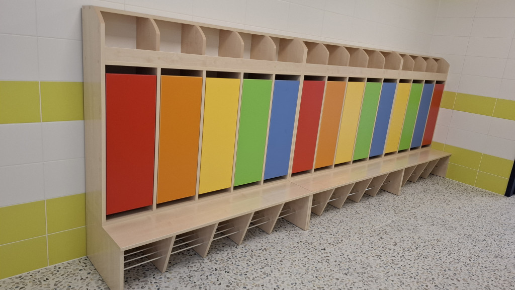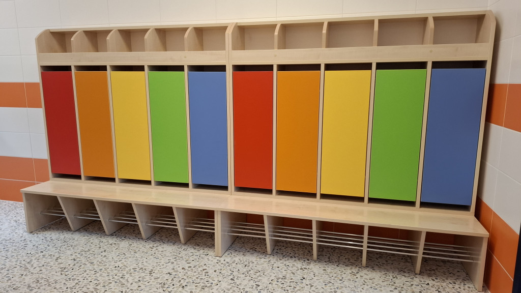 Színek és testreszabhatóság: Az Inez öltözőszekrény különböző színkombinációkban érhető el, lehetőséget biztosítva az intézmények számára, hogy a bútorzatot az óvoda színvilágához és hangulatához igazítsák.